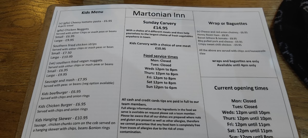 Whether you're in the mood for traditional pub fare or something a bit more adventurous, The Martonian Inn’s menu has something for everyone. With excellent value for money, it’s a place that will keep you coming back for more.